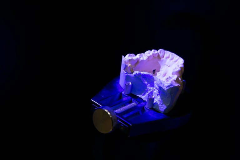 Une imprimante 3D à l'œuvre, créant une prothèse dentaire sur mesure, démontrant comment cette technologie innovante transforme le paysage de la dentisterie.